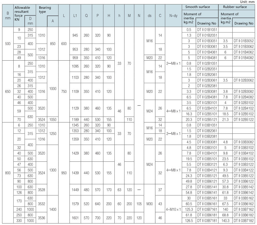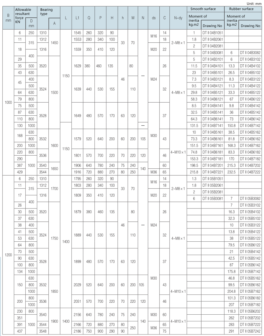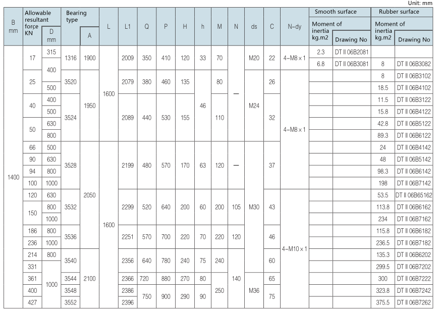 2. Drawing No. with mantissa “1” refers to smooth face, with mantissa “3” refers to herringbone rubber face, with mantissa “4” refers to diamond shape rubber face.