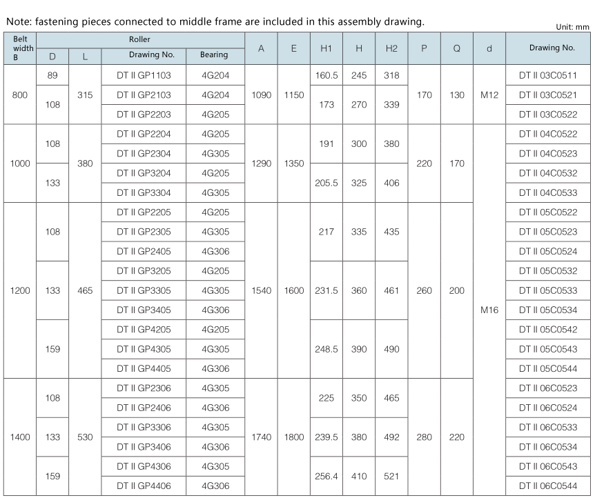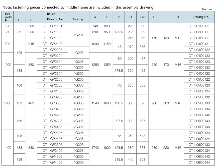 Components of DT II Fixed Belt Conveyor