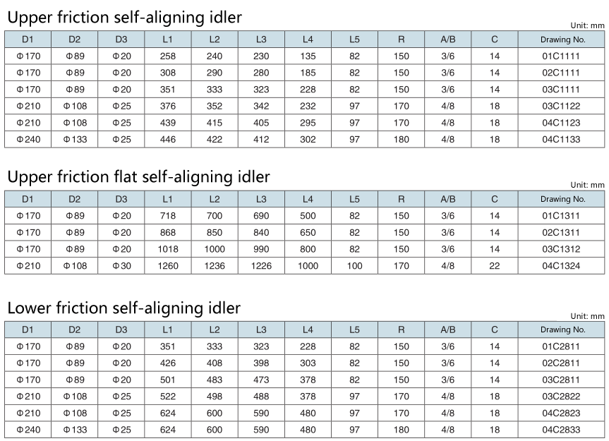 3.9 Upper friction self-aligning idler