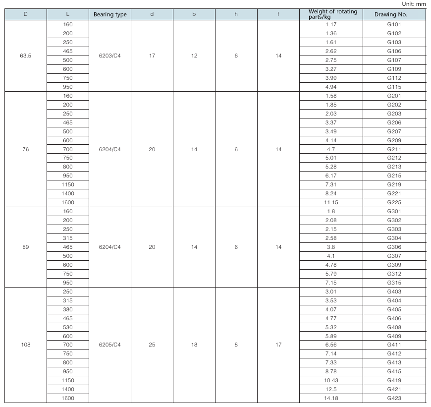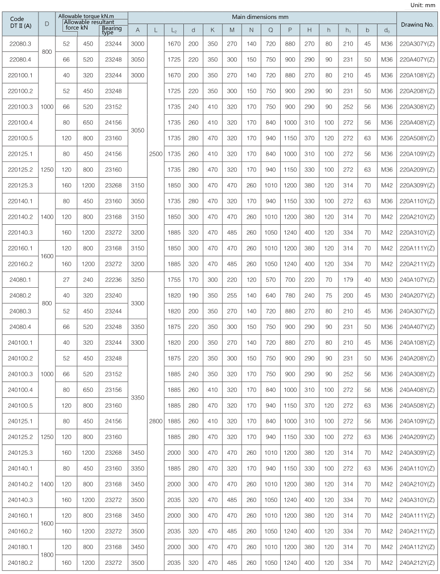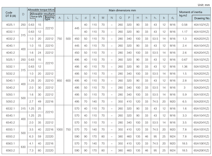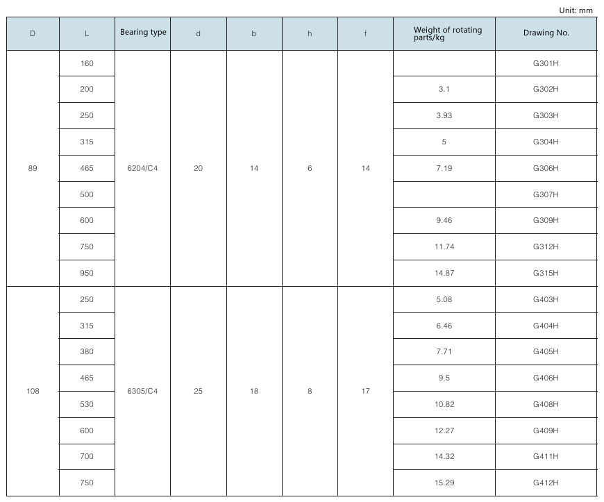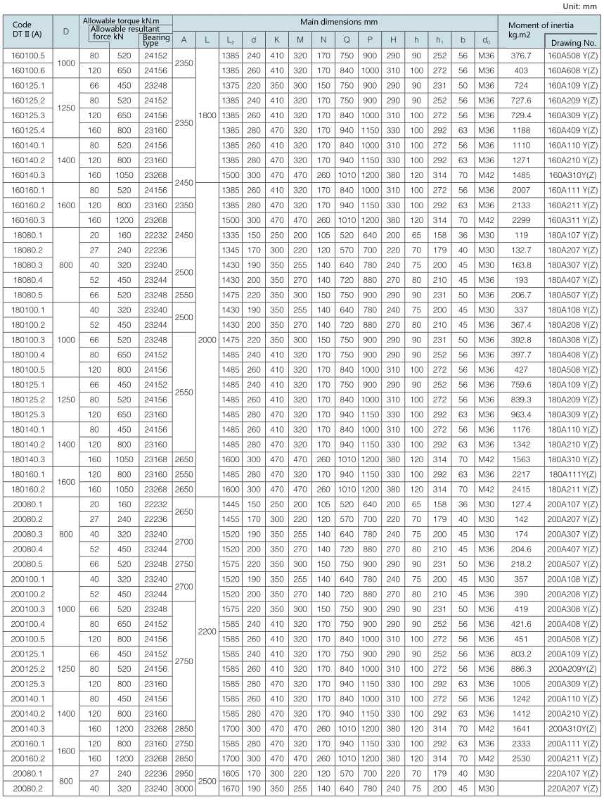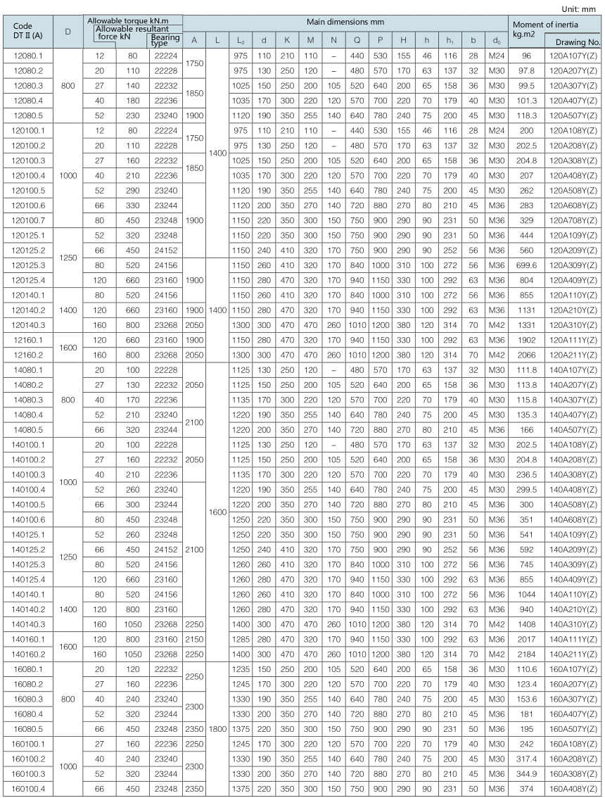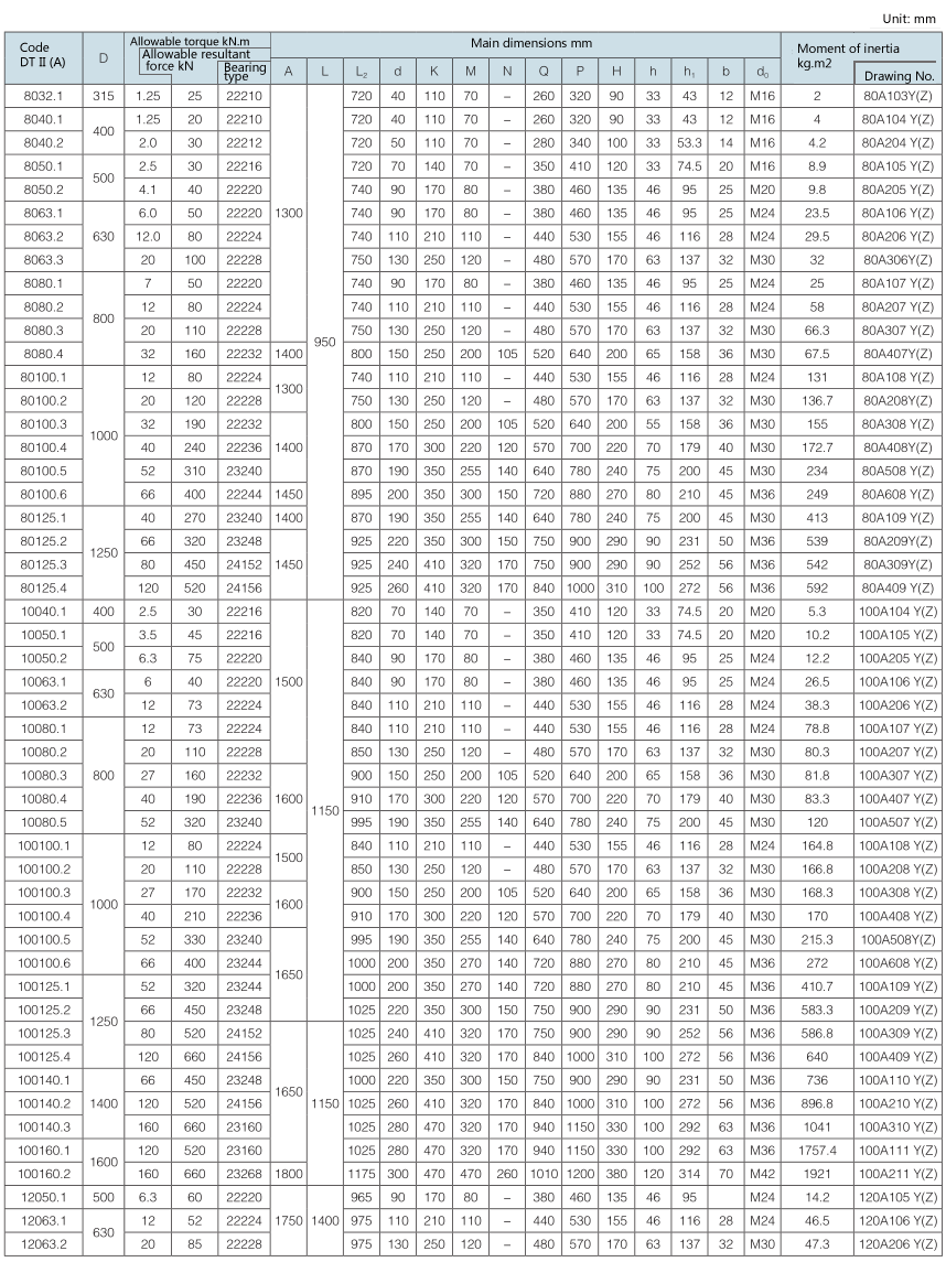 Requirement for drum shaft extension: drawing No. with “-S” as postfix refers to double shaft extension (e.g. 100A108Y (Z)-S); drawing No. without “-S” as postfix refers to single shaft extension.
