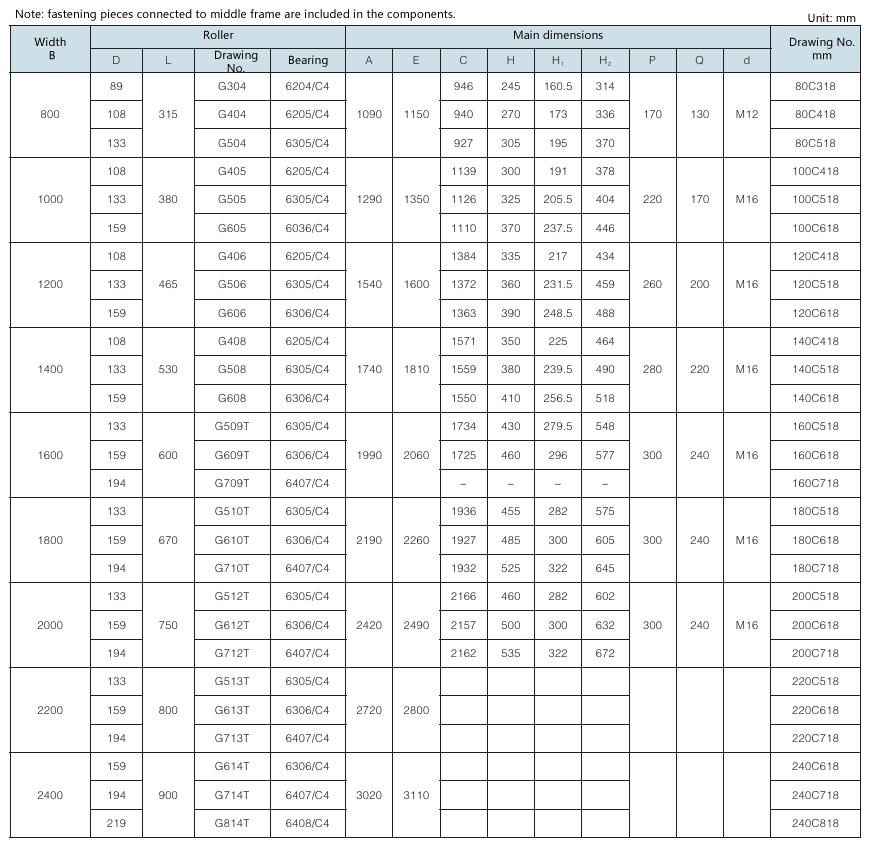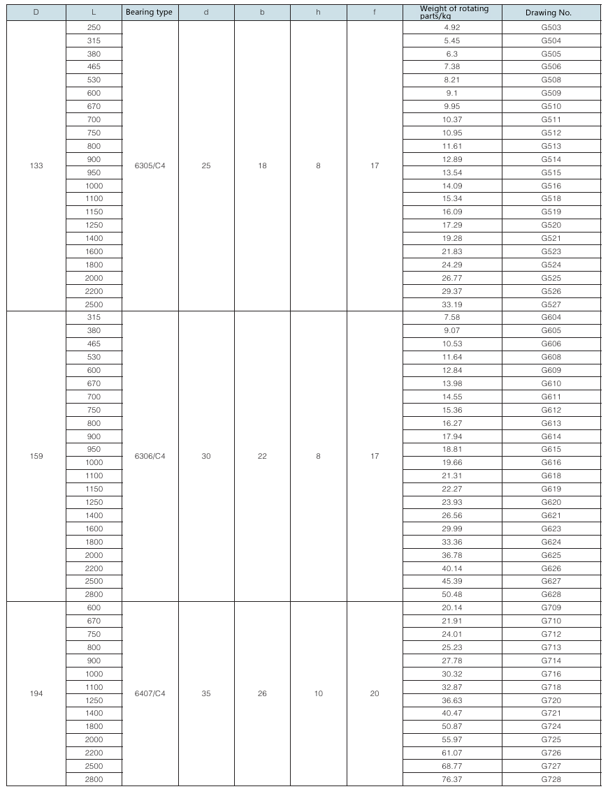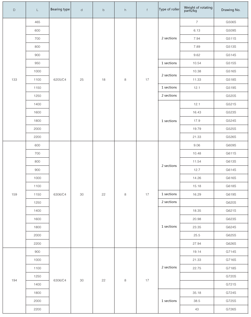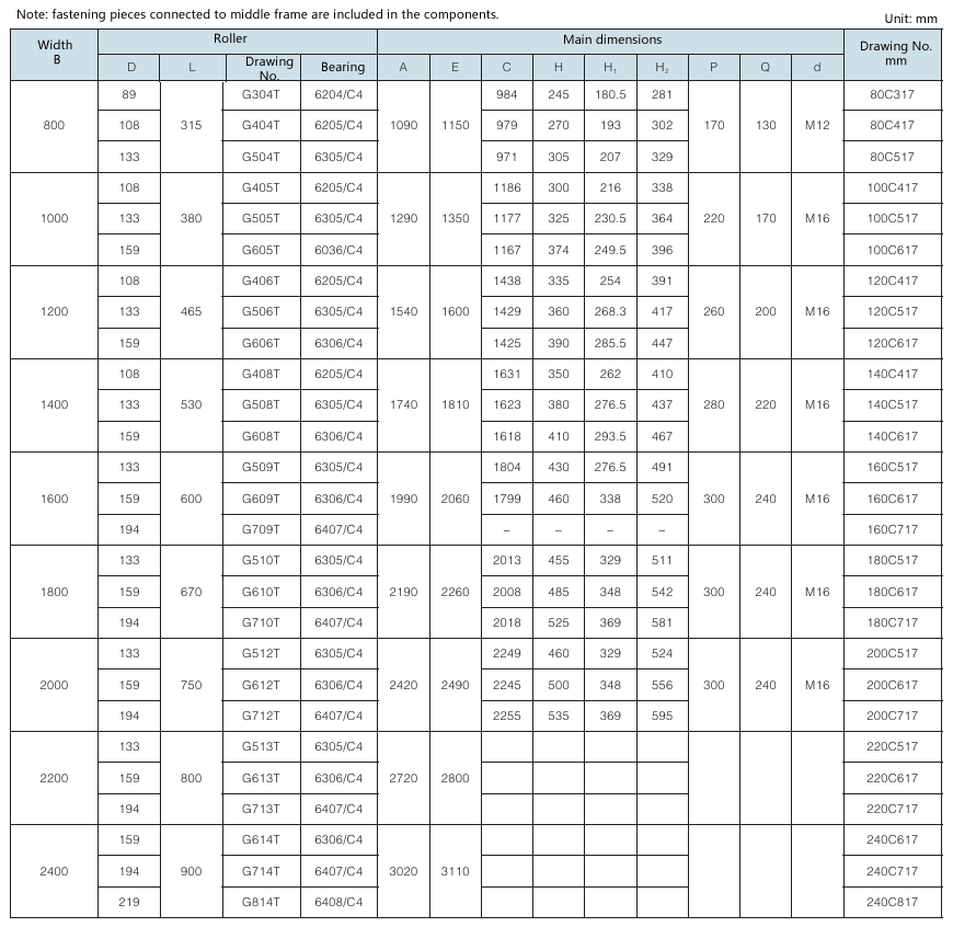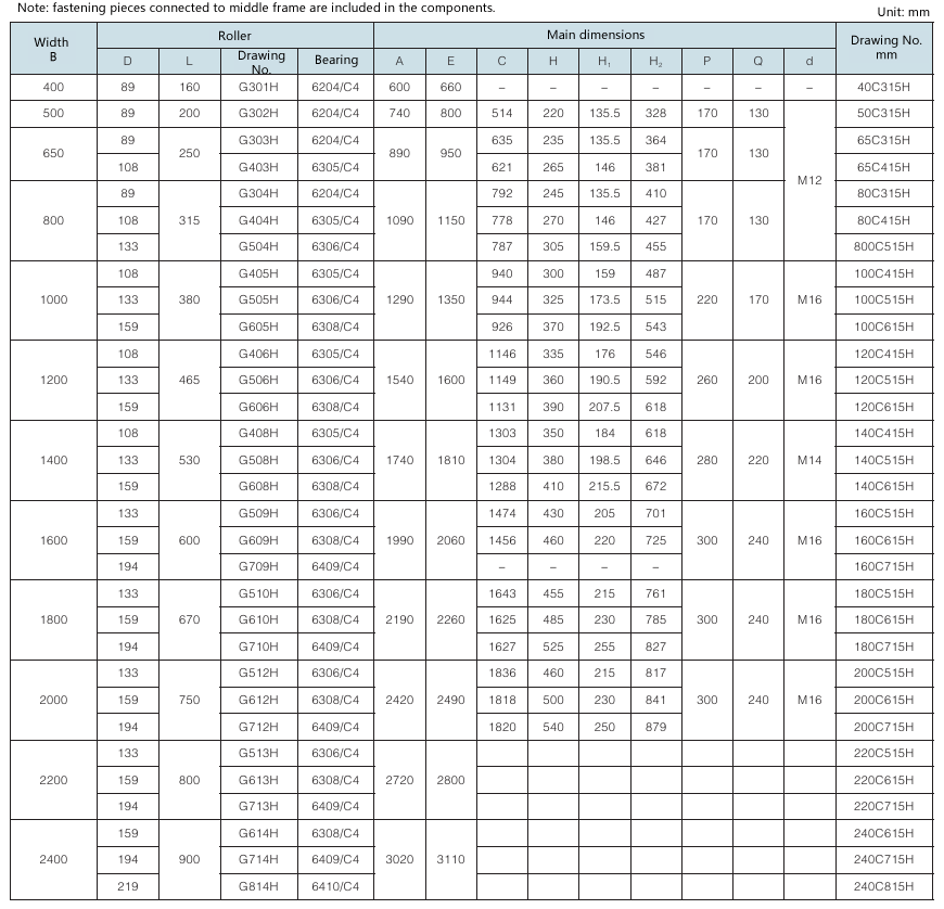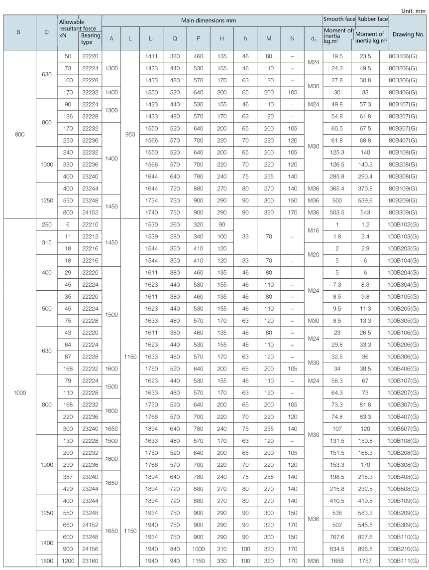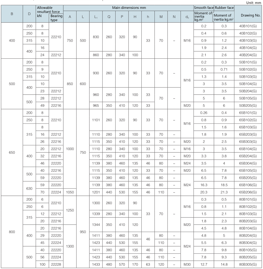 Requirement for drum surface: drawing No. with “G” as postfix refers to smooth face drum; drawing No. without “G” as postfix refers to rubber face drum.