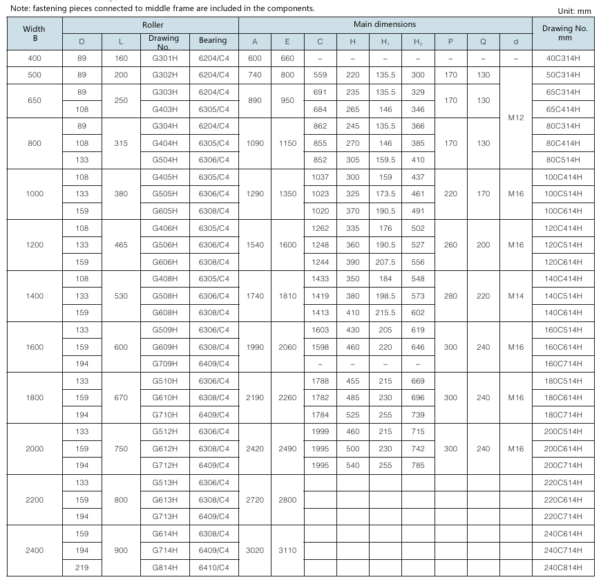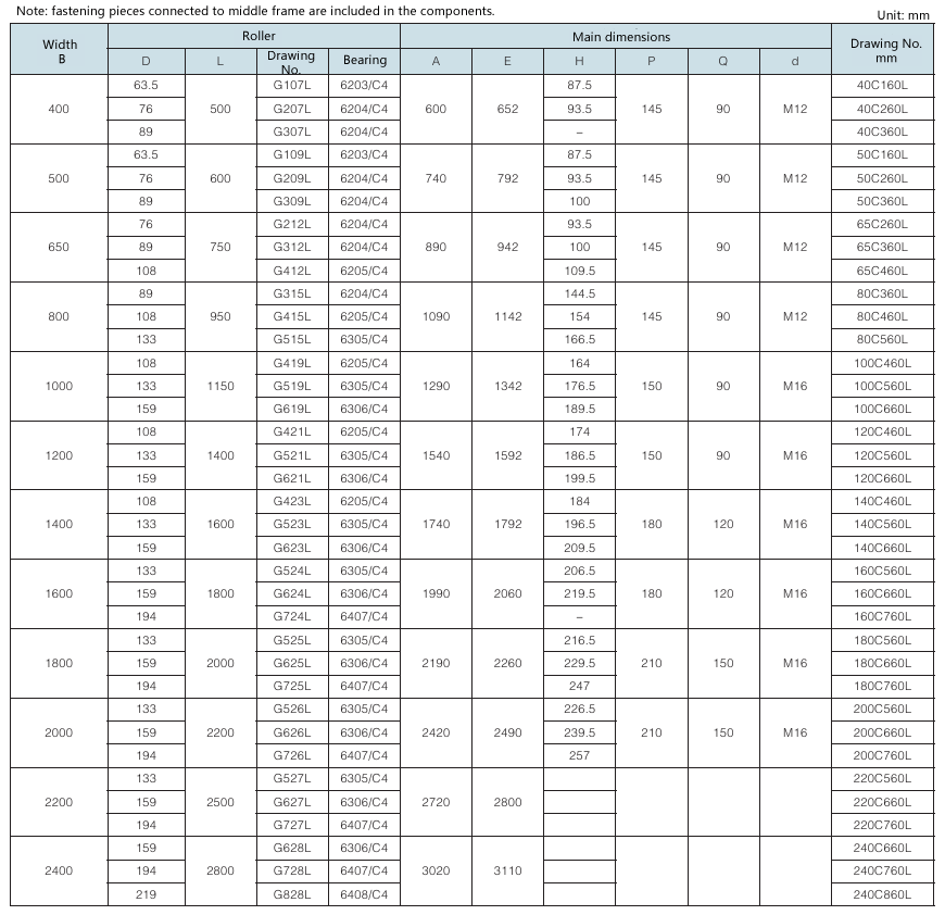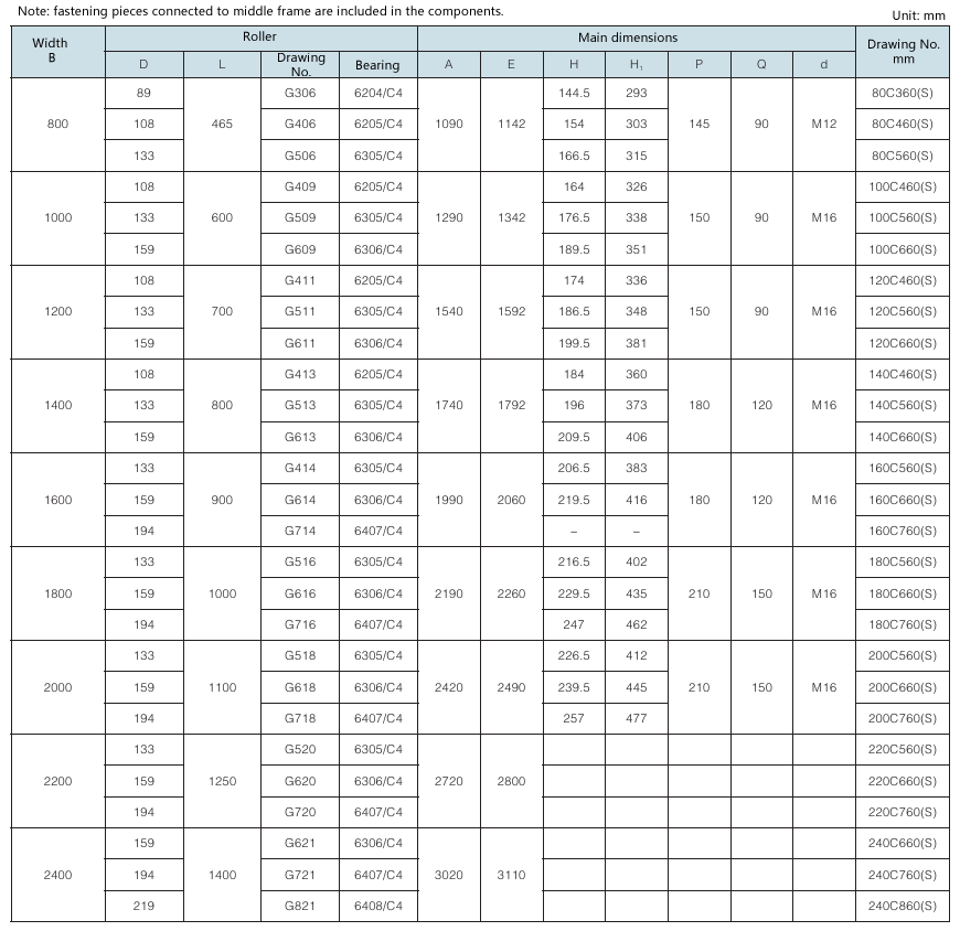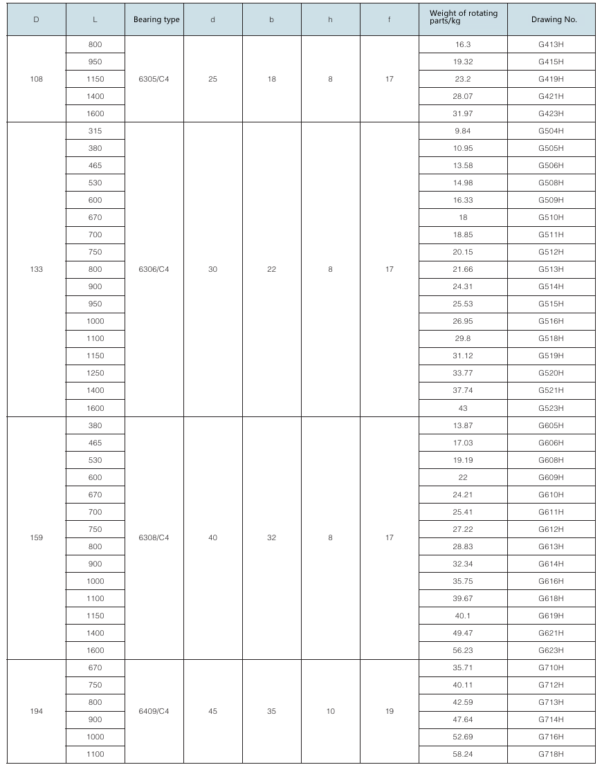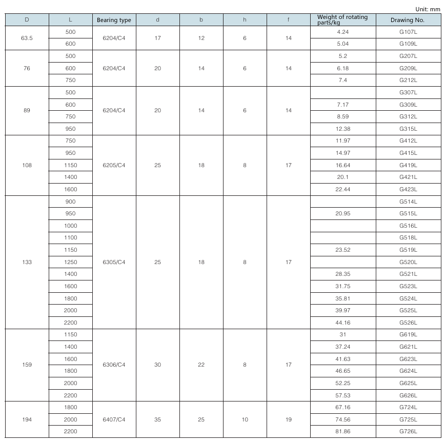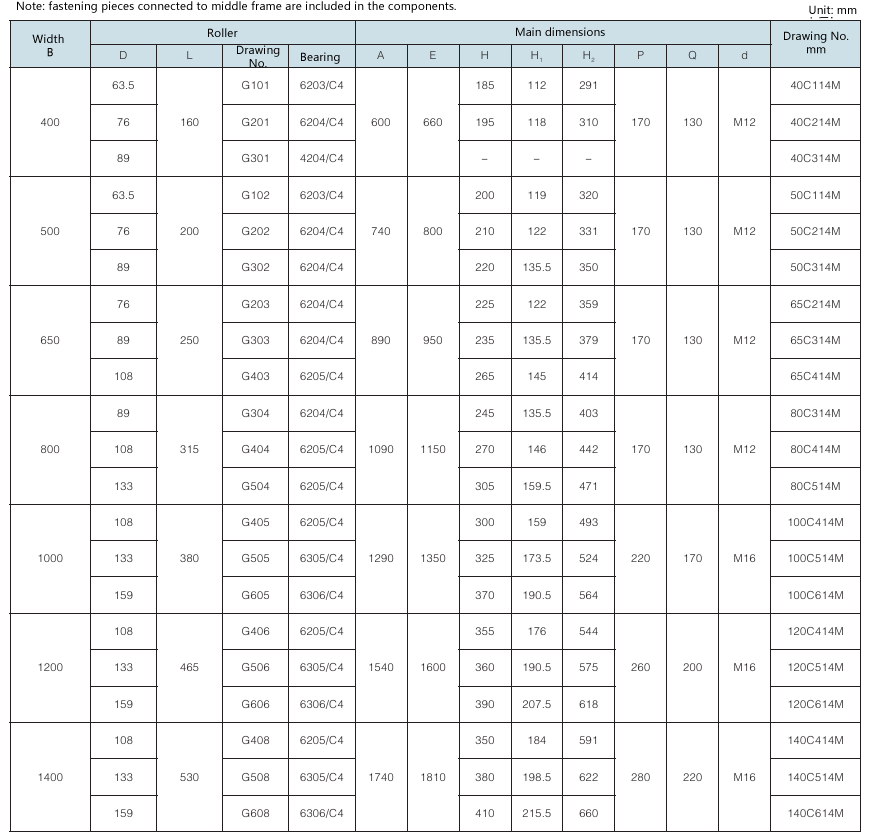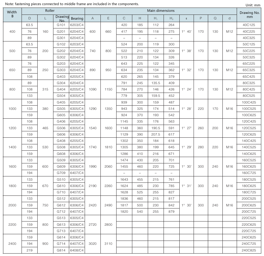 Requirement for drum surface: drawing No. with “G” as postfix refers to smooth face drum; drawing No. without “G” as postfix refers to rubber face drum.