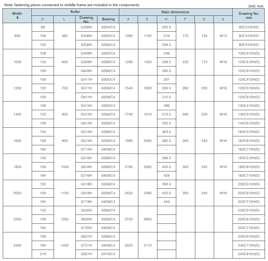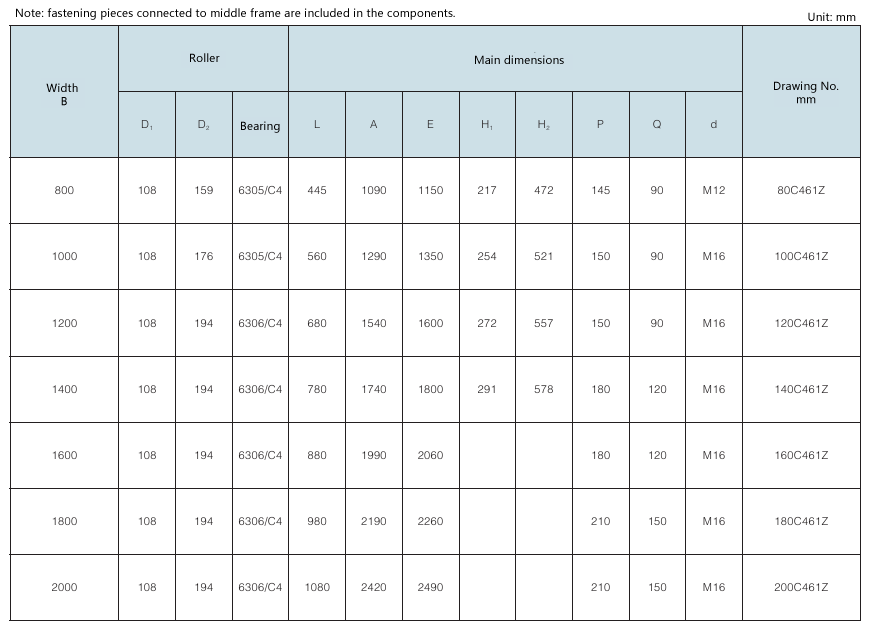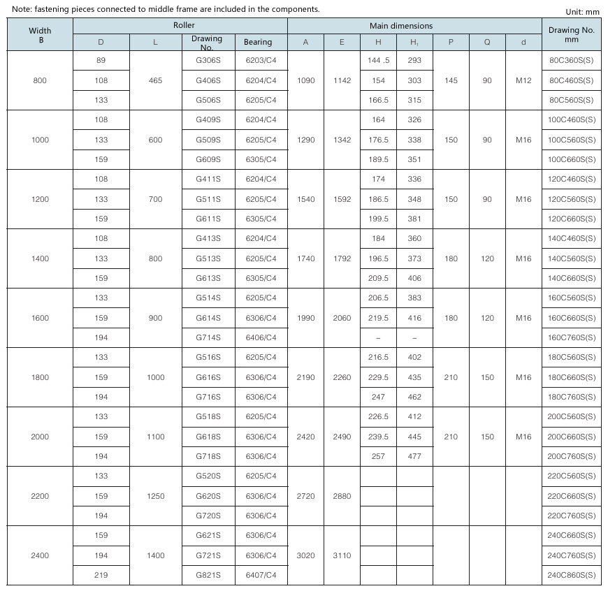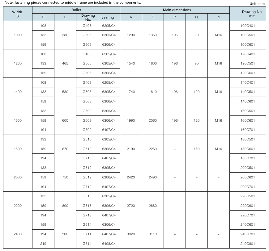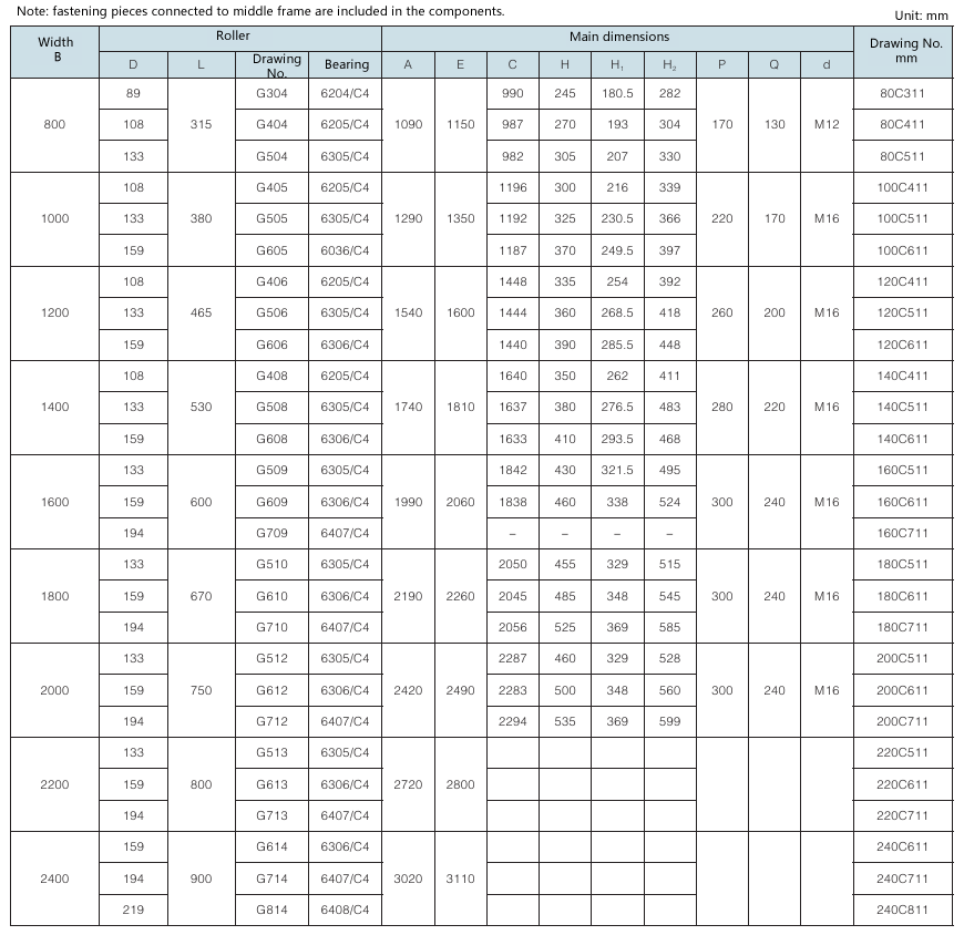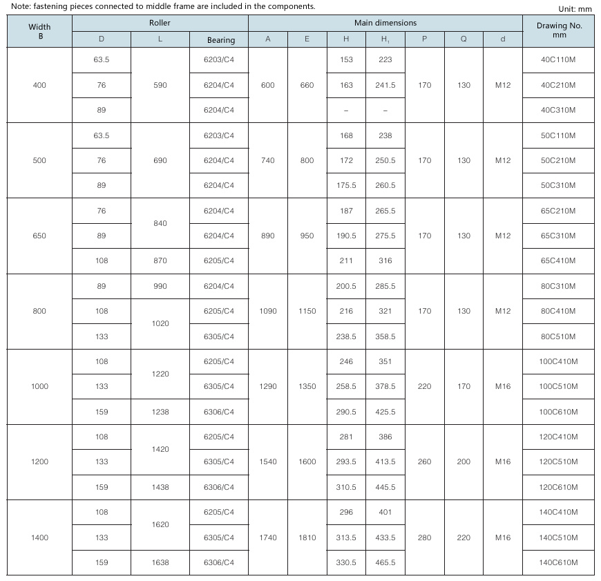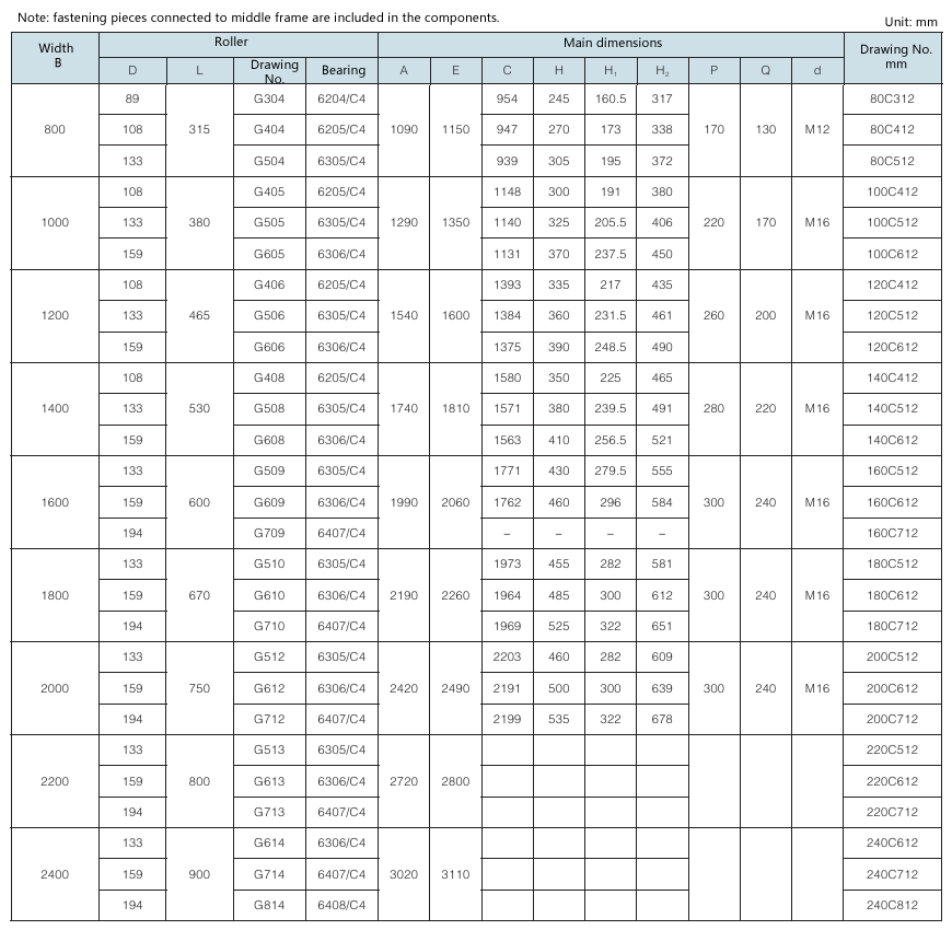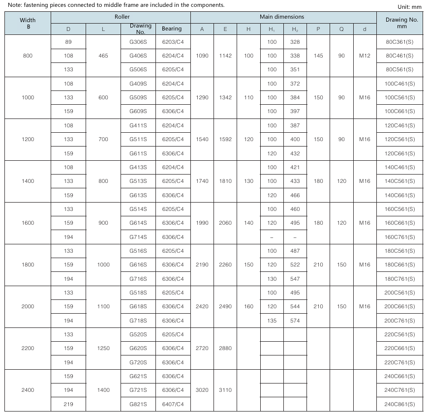 Requirement for drum surface: all are cast rubber surface. Drawing No. with “Y” as postfix refers to right-direction herringbone, with “Z” as postfix refers to left-direction herringbone, with “YZ” as postfix refers to diamond shape (omissible).