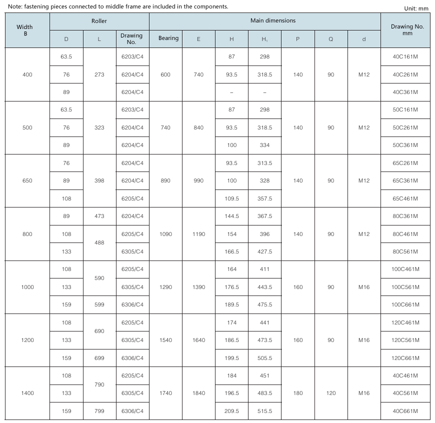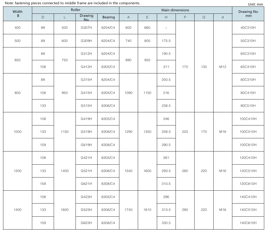 • 3.12.1 Single-roller upper parallel idler